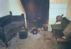 Al frente el “chupón”, fogón para la lumbre baja, del que pendían las llares con el caldero. Estaba delimitado por ambos vasares. Los flancos de la cocina lo ocupaban dos escaños, con pellejos de oveja, que se utilizaban como asientos y como improvisado sofá para la siesta al calor de la lumbre. Entre el mobiliario destacaba la pequeña mesa cuadrada con un cajón donde se guardaba el pan, cubiertos y sobrante del tocino de la comida. En torno a esa mesa se sentaba la familia para comer en sus correspondientes tajuelas.