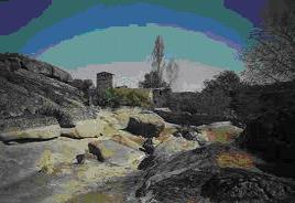 La piedra, tan pródiga y presente en la comarca, ha servido para levantar multitud de puentes de todo tipo, fuentes, potros, casas y dependencias que armonizan y se confunden entre el paisaje rocoso.